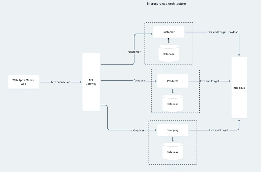 由於每個服務都是獨立的,那服務之間該如何互相溝通?假設一個電商網站中主要有Customer, Products, Shopping,三種獨立的服務,但Products需要依賴於Customer服務的資料,該怎麼辦?